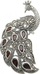 Фото «Серебряная брошь ''Павлин'' Марказит HB566-granat-mr с гранатом, марказитами»