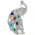 Фото «Серебряная брошь Марказит HB566-mix-mr с бирюзой, лазуритом, ониксом, перламутром, сердоликом, хризопразом, марказитами Swarovski»