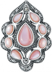 Серебряная брошь Марказит HB590-mr с перламутром, марказитами