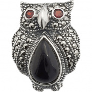 Фото «Серебряная брошь ''Сова'' Марказит HB602-oniks-mr с гранатами, ониксом, марказитами Swarovski»