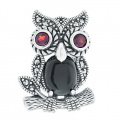 Серебряная брошь ''Сова'' Марказит HB751B-oniks-mr с марказитами, гранатами, ониксом