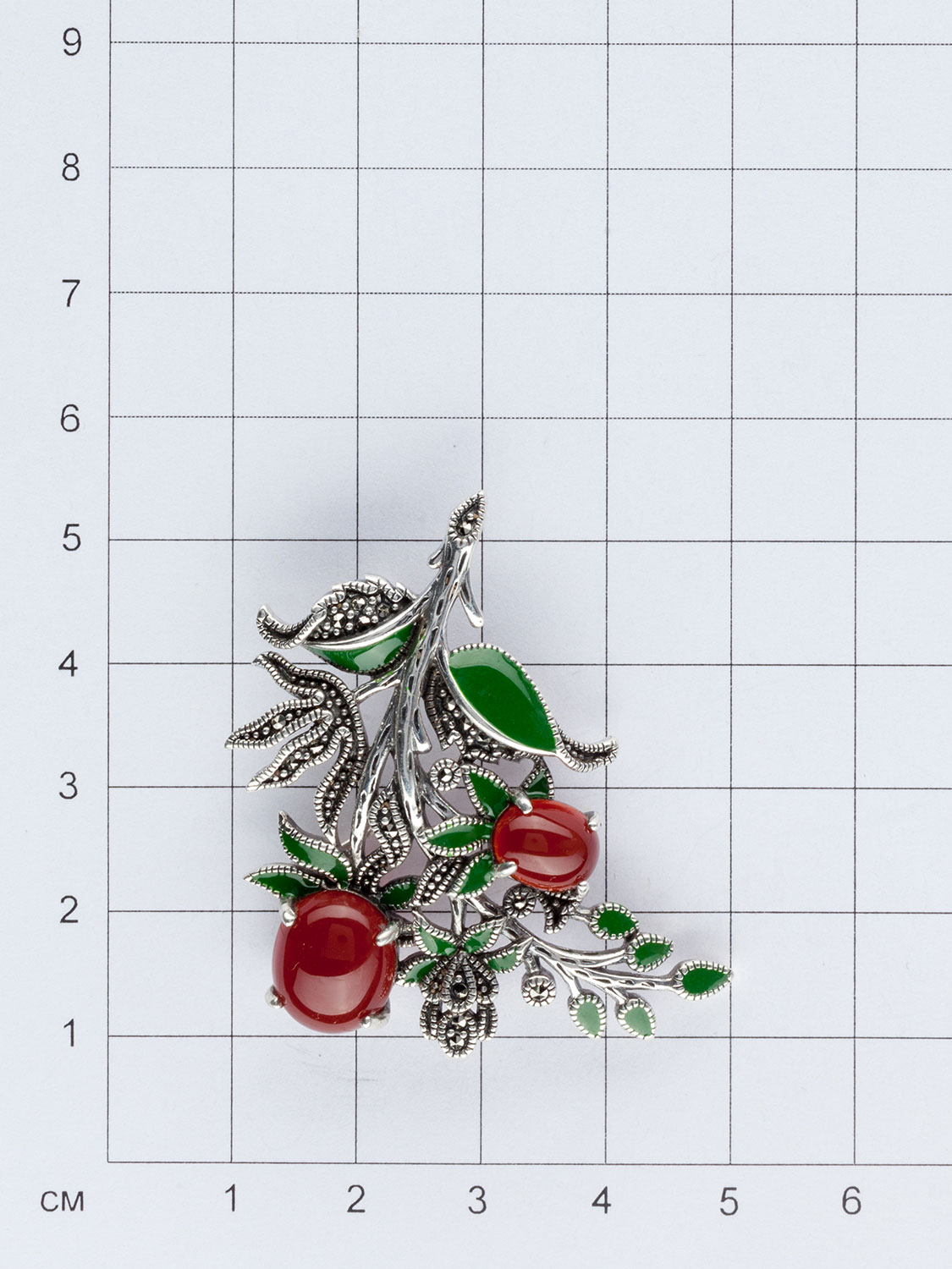 Серебряная брошь Марказит HB763-serdolik-mr с сердоликами, марказитами