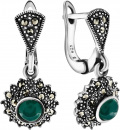 Фото «Серебряные серьги с подвесками Марказит HE0916-hrizopraz-mr с хризопразами, марказитами Swarovski»