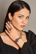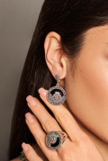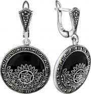 Фото «Серебряные серьги Марказит HE1343-oniks-mr c марказитом, ониксом, cо Swarovski»