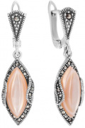 Серебряные серьги Марказит HE1411-perlamutr-rozovyj-mr c марказитом, перламутром, cо Swarovski