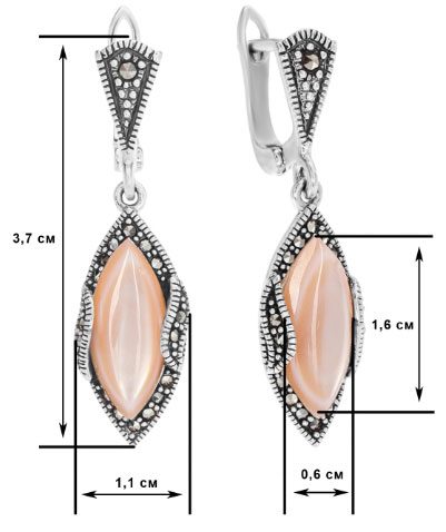 Серебряные серьги Марказит HE1411-perlamutr-rozovyj-mr c марказитом, перламутром, cо Swarovski