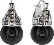Фото «Серебряные серьги шарики Марказит HE1421-oniks-mr с ониксами, марказитами Swarovski»