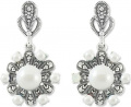 Серебряные серьги с подвесками Марказит HE767-zhemchug-mr с жемчугом, марказитами