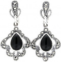 Фото «Серебряные серьги с подвесками Марказит HE792-mr с ониксами, марказитами»