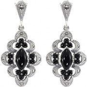 Фото «Серебряные серьги Марказит с подвесками HE845-oniks-mr с ониксом»