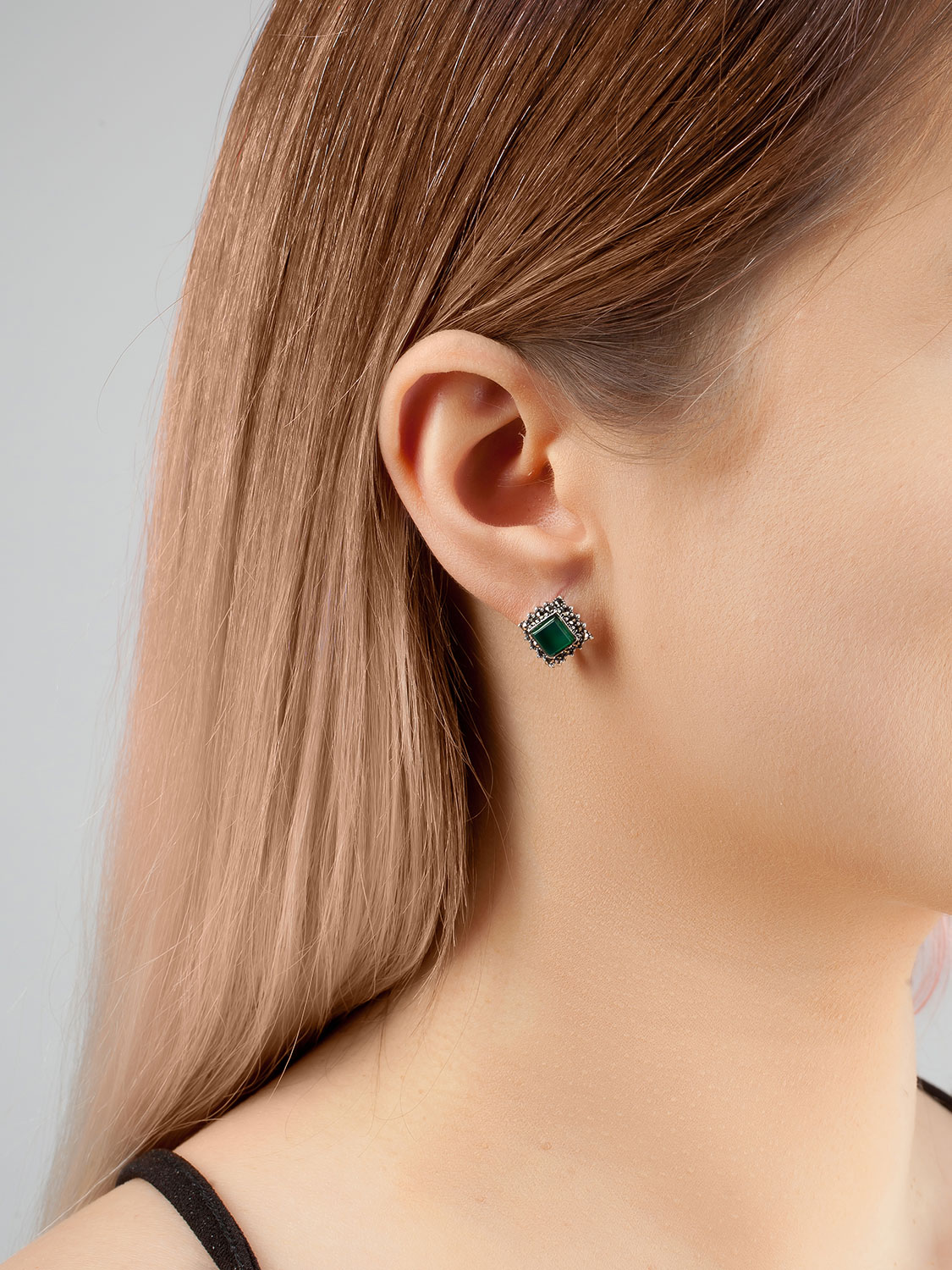 Серебряные серьги Марказит HE865-hrizopraz-mr с хризопразами, марказитами