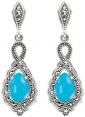 Фото «Серебряные серьги с подвесками Марказит HE961-birjuza-mr с бирюзой, марказитами Swarovski»