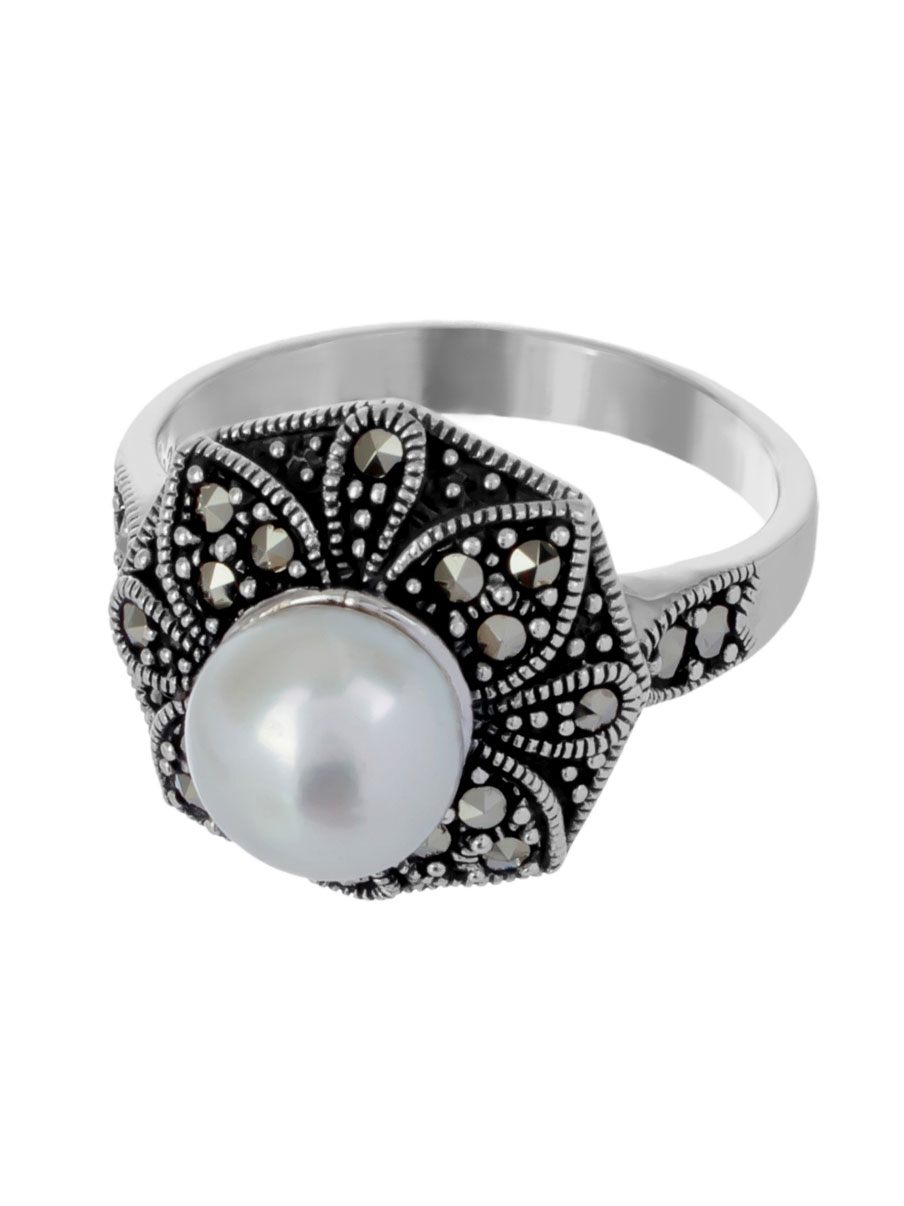 Фото «Серебряное кольцо Марказит HR1221-zhemchug-mr с марказитами, жемчугом»
