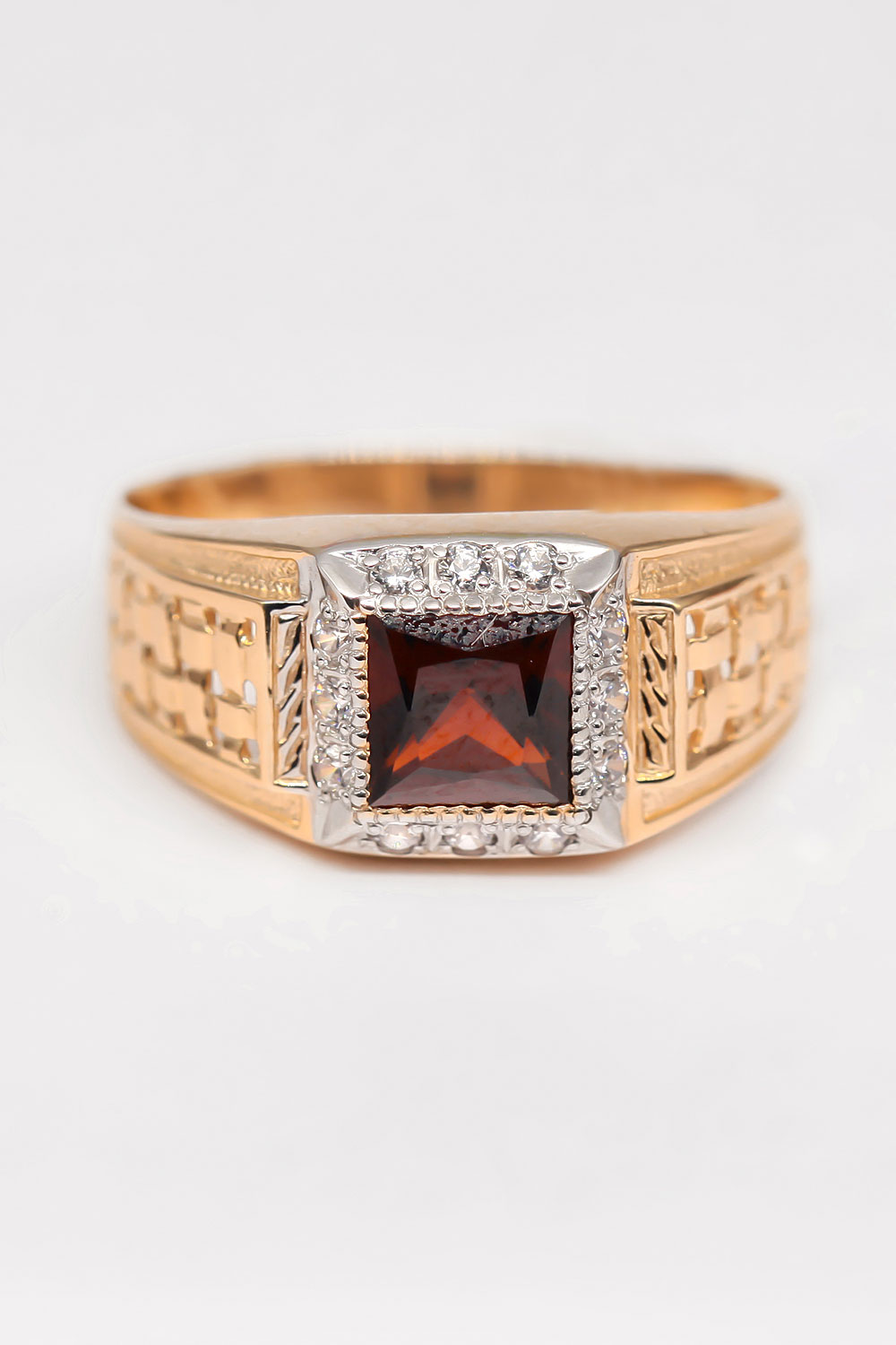 Фото «Мужская золотая печатка перстень Маршал KM-165-z-granat с гранатом, фианитами»