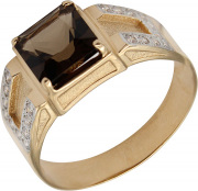 Фото «Мужская золотая печатка перстень Маршал KM-302-rauh-topaz с раухтопазом, фианитами»
