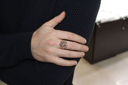 Фото «Мужская золотая печатка перстень с гербом Маршал KM-46/16-z-fianit с фианитом»