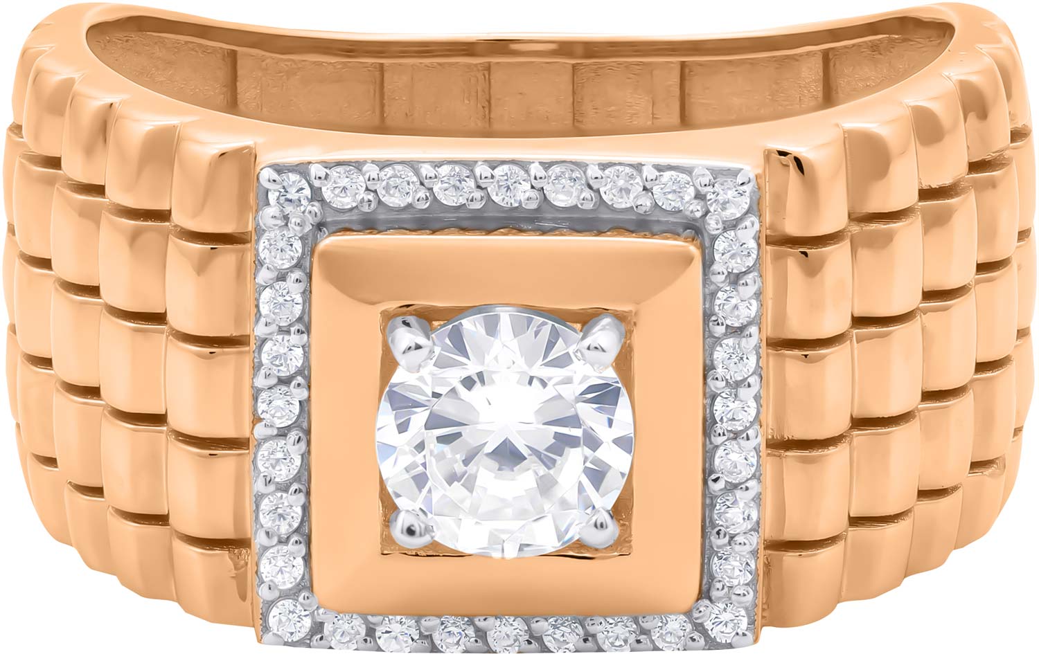 Мужская золотая печатка перстень Мастер Бриллиант 001-0532-0001-011 с фианитами
