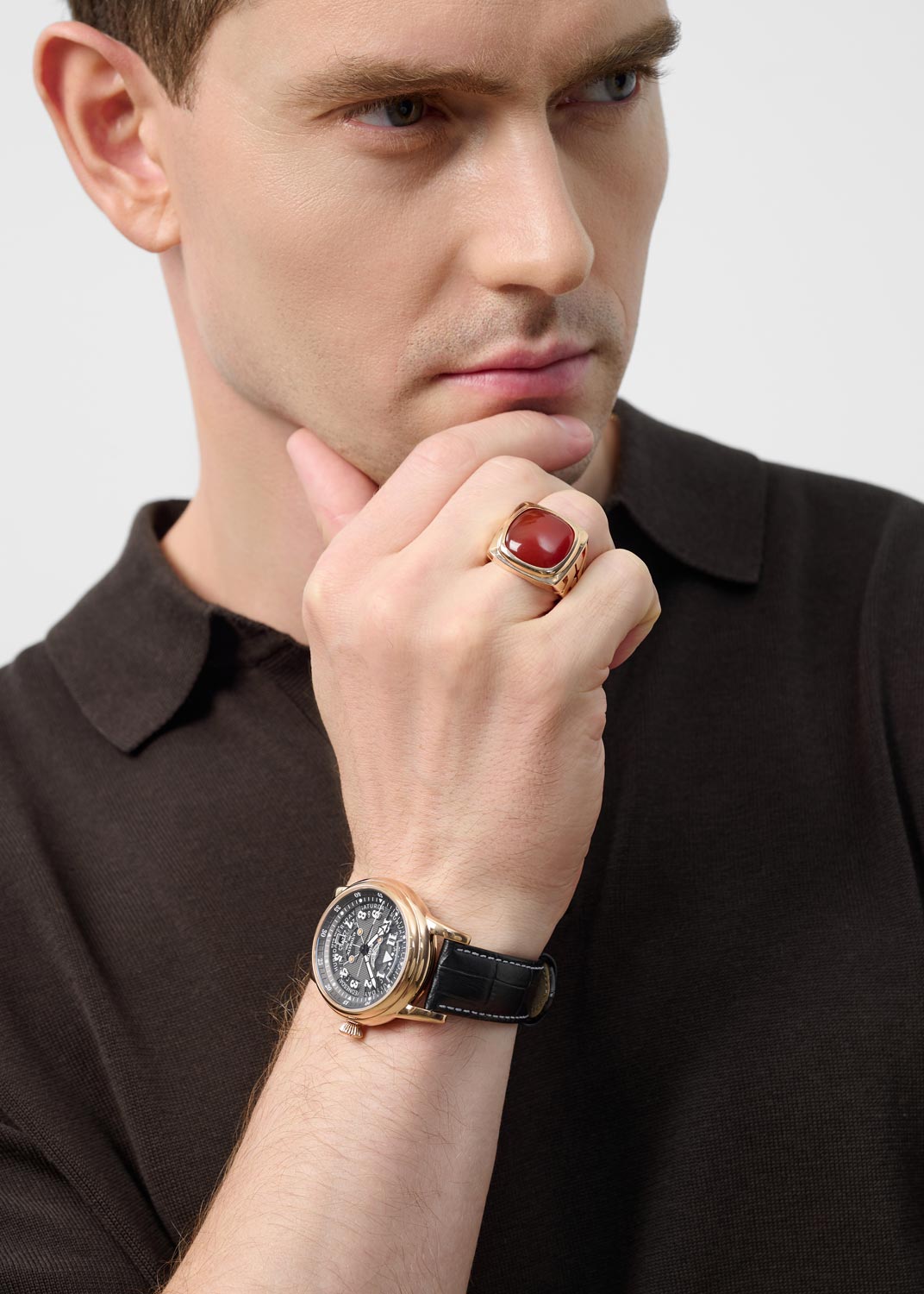 Фото «Мужская золотая печатка перстень Мастер Бриллиант 01-3-617-0900-010 с красным агатом»