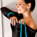 - бирюза - 2шт. - 8,98К, сапфир белый - 18шт. - 3,29К, бриллиант - 4шт. в 57 граней - 0,015К, чистота камня 4/4А (цвет, качество), бриллиант - 54шт. в 57 граней - 0,51К, чистота камня 3/4А (цвет, качество)