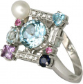 Золотое кольцо Mikhail Milyutin 002.KB/21 с бриллиантами, сапфирами, топазами, аметистом, жемчугом