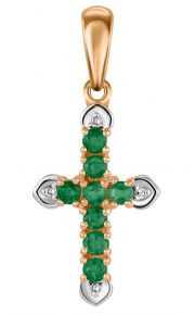 Золотой декоративный крестик Лукас J01-D-SS-35495-EM-r с изумрудами, бриллиантами