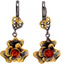 Серебряные серьги с подвесками Национальное Достояние 821904-nd с янтарем