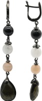 Фото «Серебряные длинные серьги Национальное Достояние SE1382-nd с ониксами, перидотом, лунным каменем»