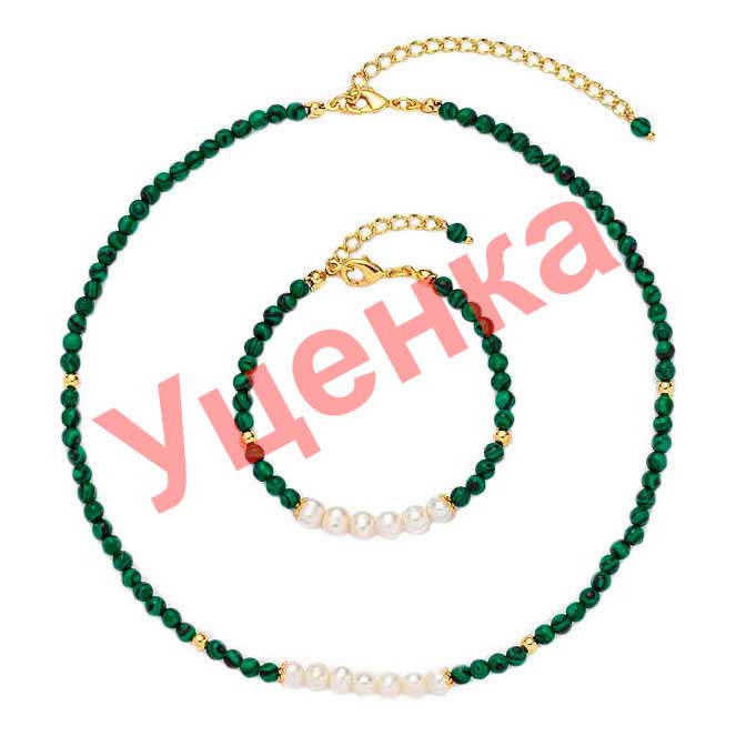 - малахит, натуральный жемчуг, жемчуг