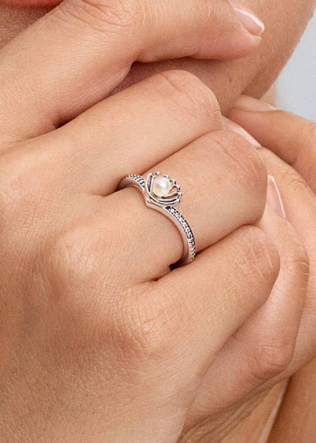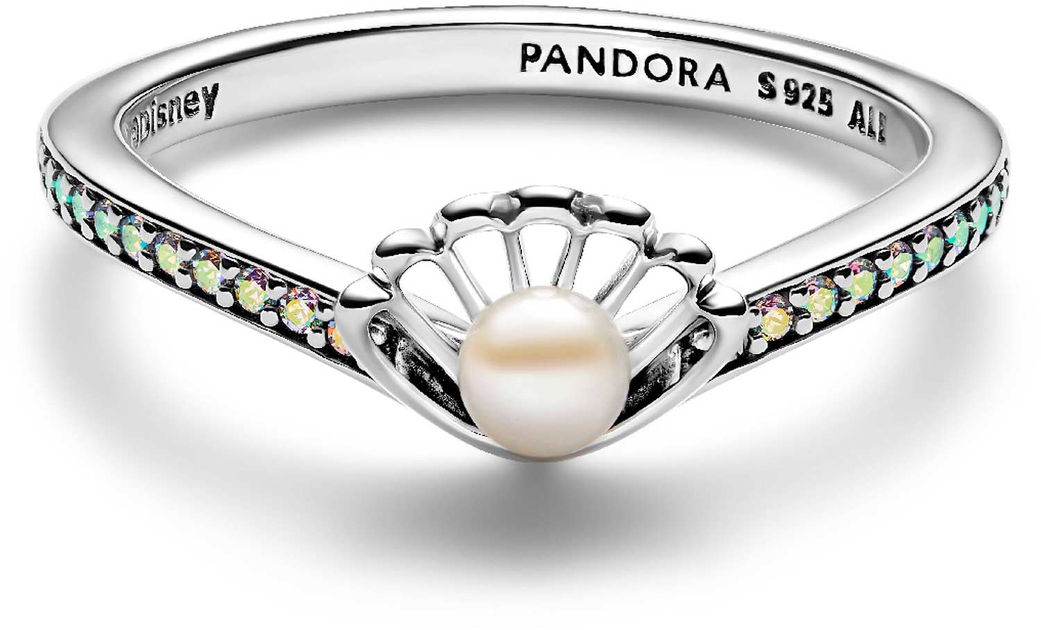 Фото «Серебряное кольцо ''Ракушка принцессы Ариэль'' PANDORA Disney 193654C01 с жемчугом, фианитами»