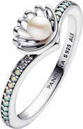 Серебряное кольцо ''Ракушка принцессы Ариэль'' PANDORA Disney 193654C01 с жемчугом, фианитами