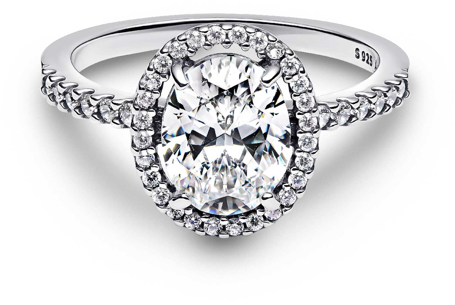 Серебряное кольцо ''Овал с сияющим ореолом'' PANDORA Timeless 193777C01 с фианитами