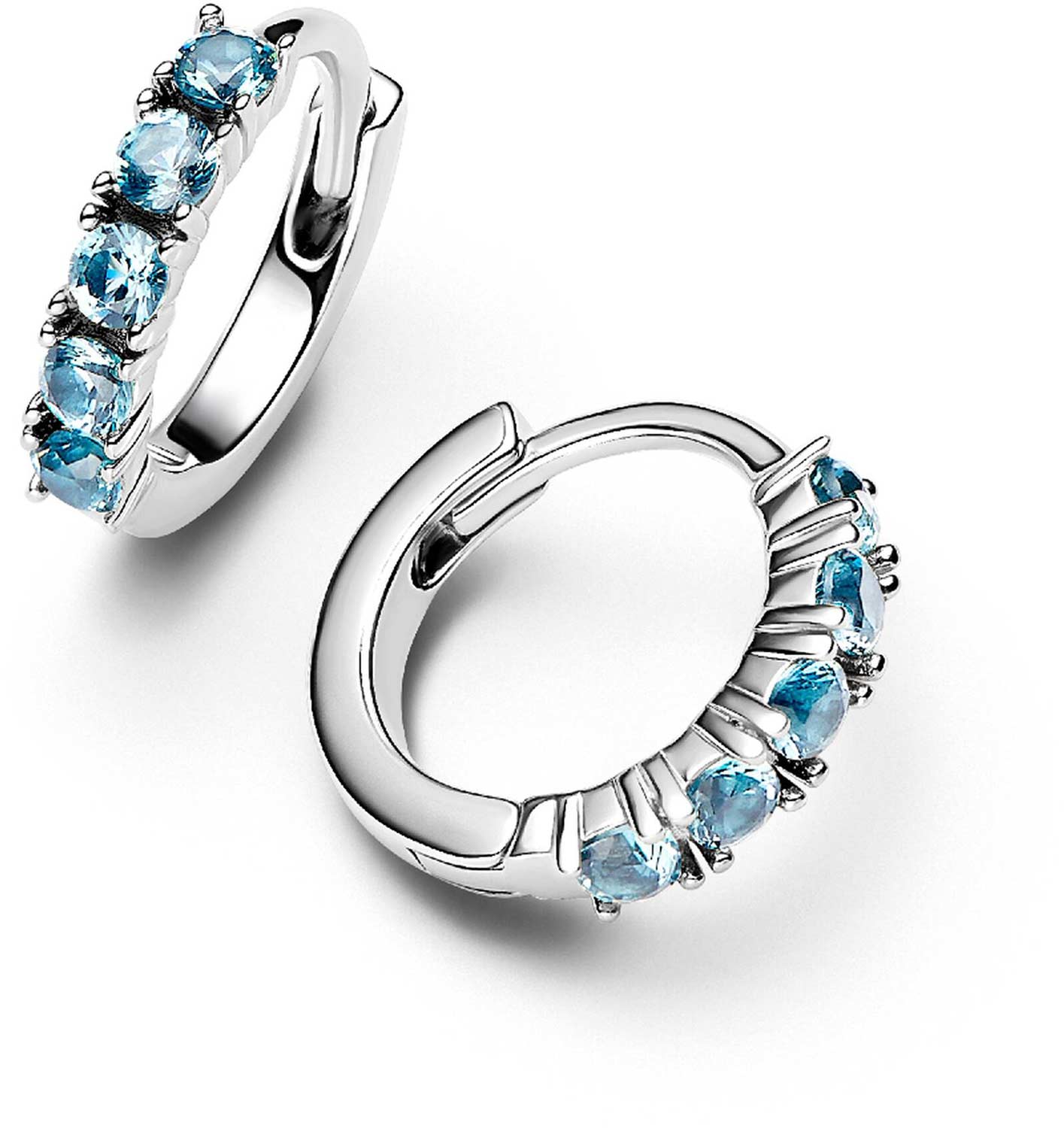 Фото «Серебряные серьги хаггисы ''Голубое сияние'' PANDORA Timeless 293849C01 с фианитами»