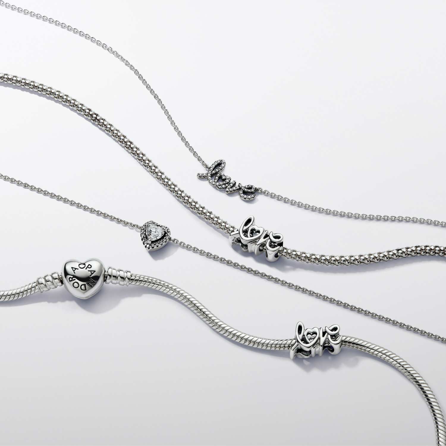 Фото «Серебряная подвеска на цепочке ''Любовь, написанная от руки'' PANDORA 393076C01 с фианитами»