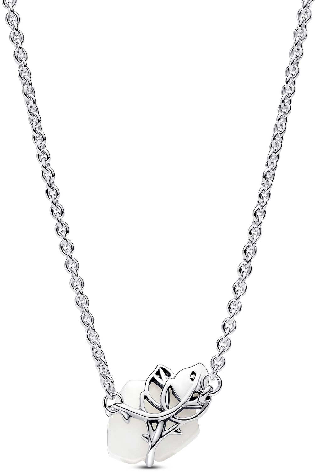 Серебряная подвеска на цепочке ''Белая роза в цвету'' PANDORA 393206C01 с искусственным жемчугом, фианитами