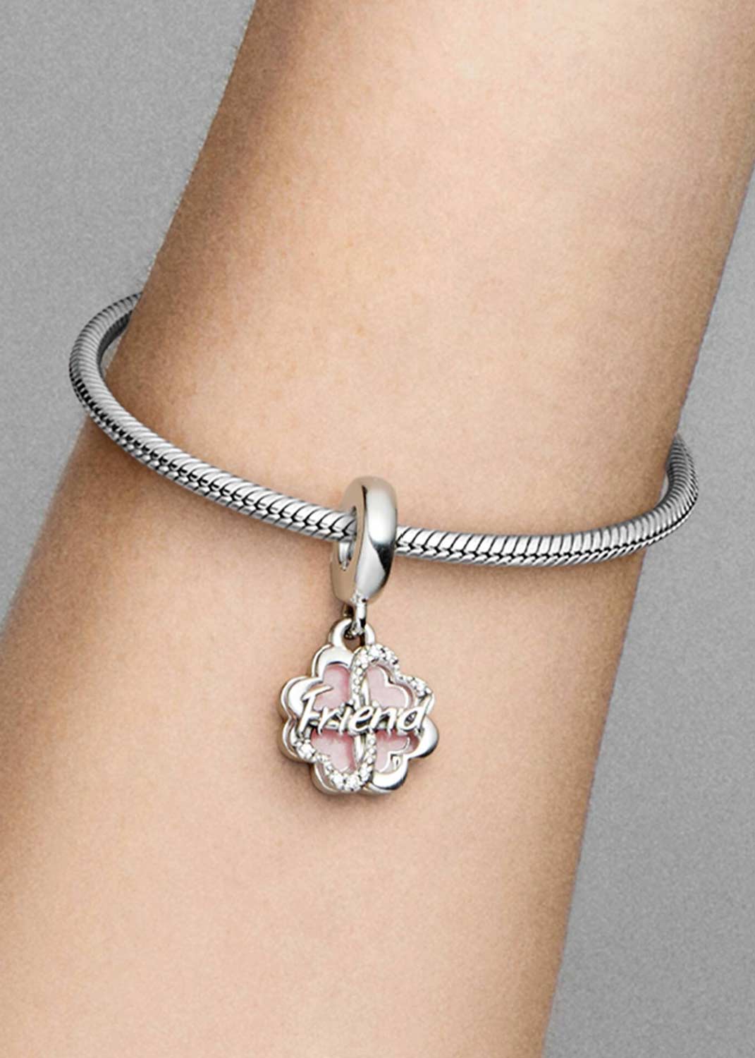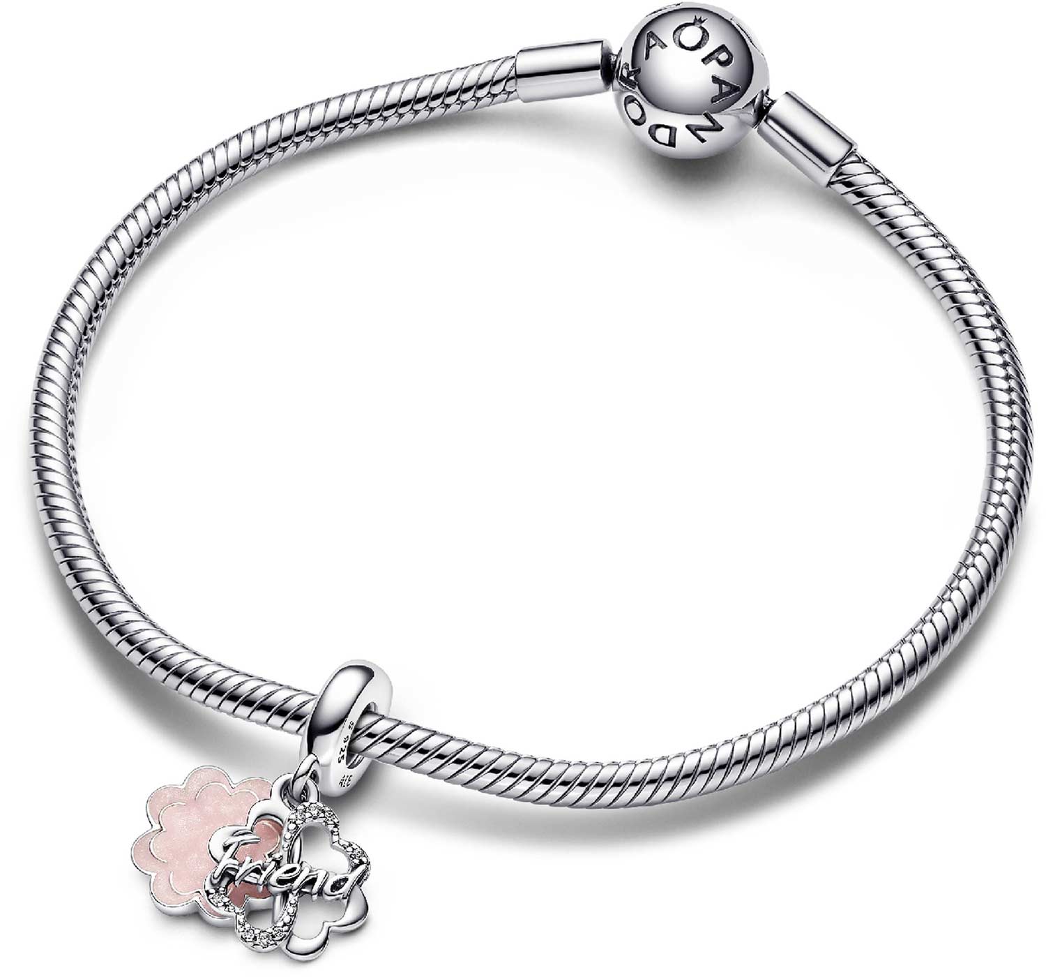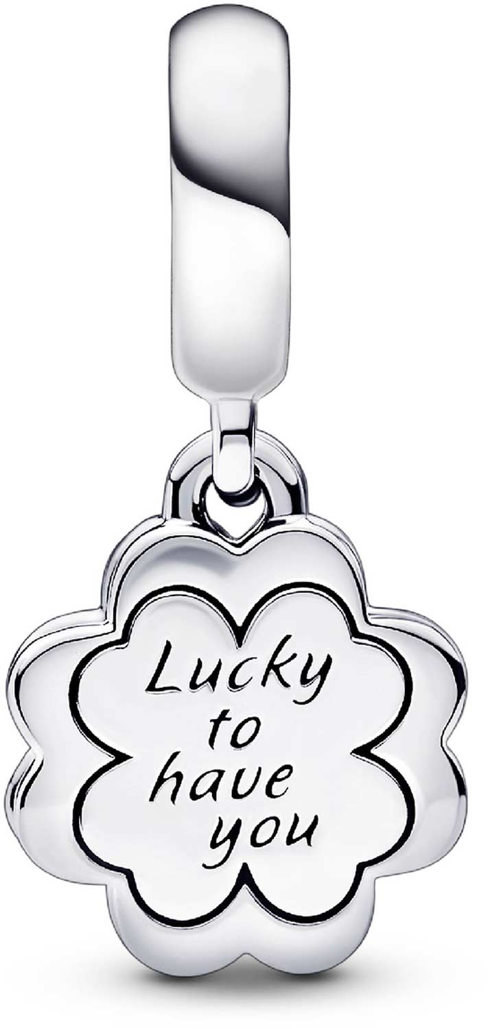 Фото «Серебряная подвеска-шарм ''Как мне повезло с тобой'' PANDORA Moments 792245C01 с эмалью, фианитами»