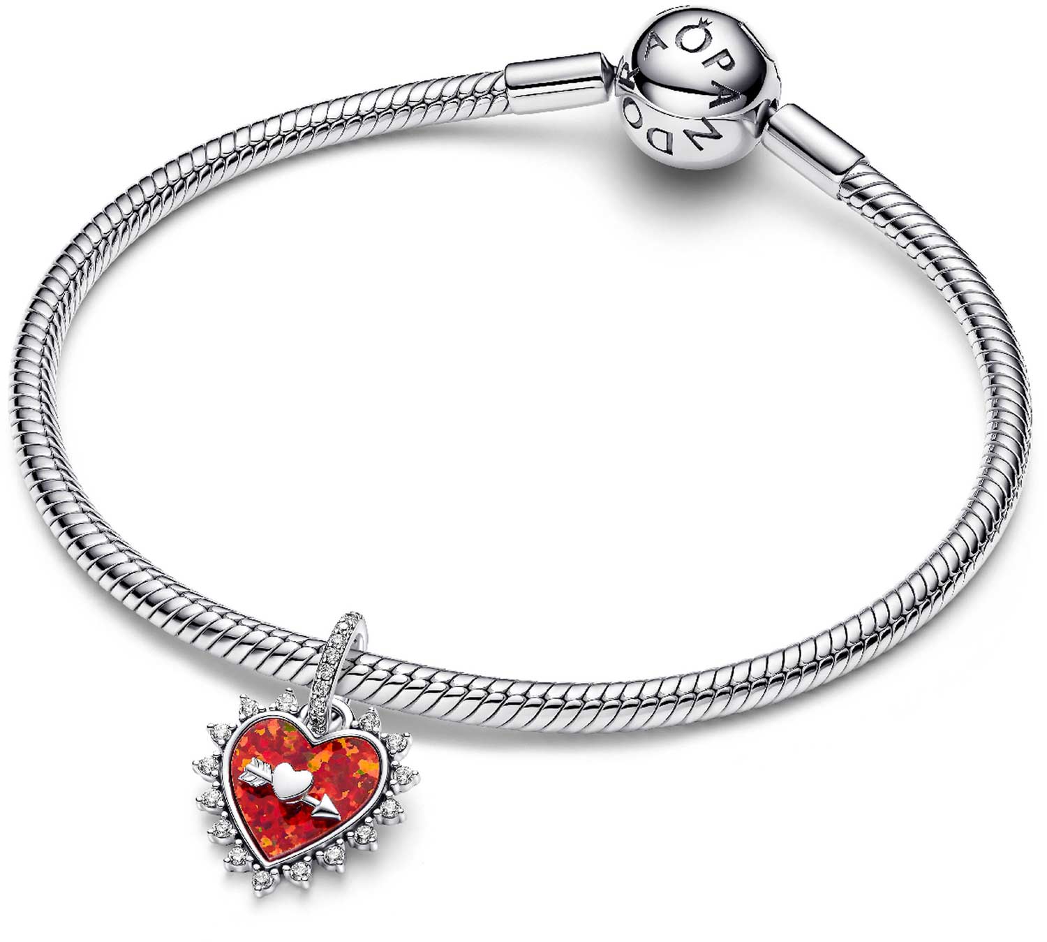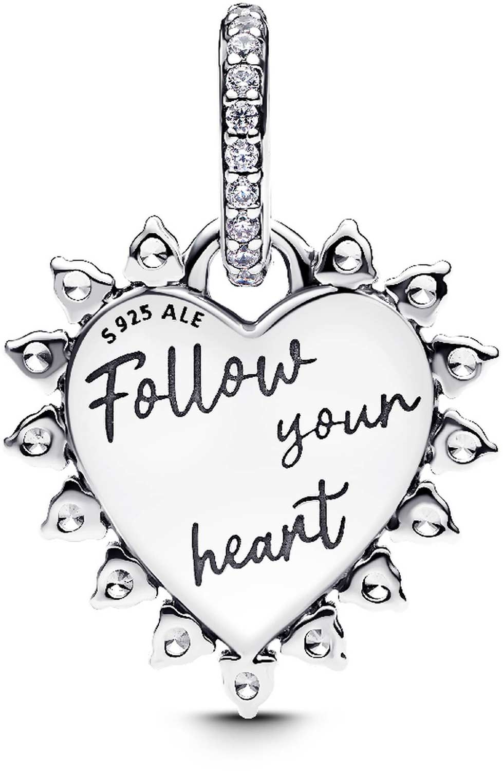 Фото «Серебряная подвеска-шарм ''Следуй за своим сердцем'' PANDORA Moments 793667C01 с искусственным опалом, фианитами»