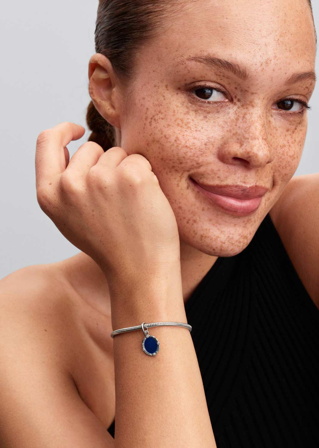 Центр украшения из эмали, окруженный серебряной оправой, скрывает секрет - подвеска бусина нагревается, внутри появляется лицо зеркала, словно по волшебству.