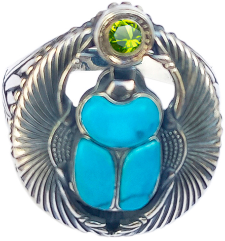 Фото «Мужской серебряный перстень ''Скарабей'' Persian KS001-BIRJUZA-HRIZOLIT с бирюзой, хризолитом»