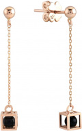 Золотые длинные серьги ''Куб'' PIANO PXE0087-r с ониксами
