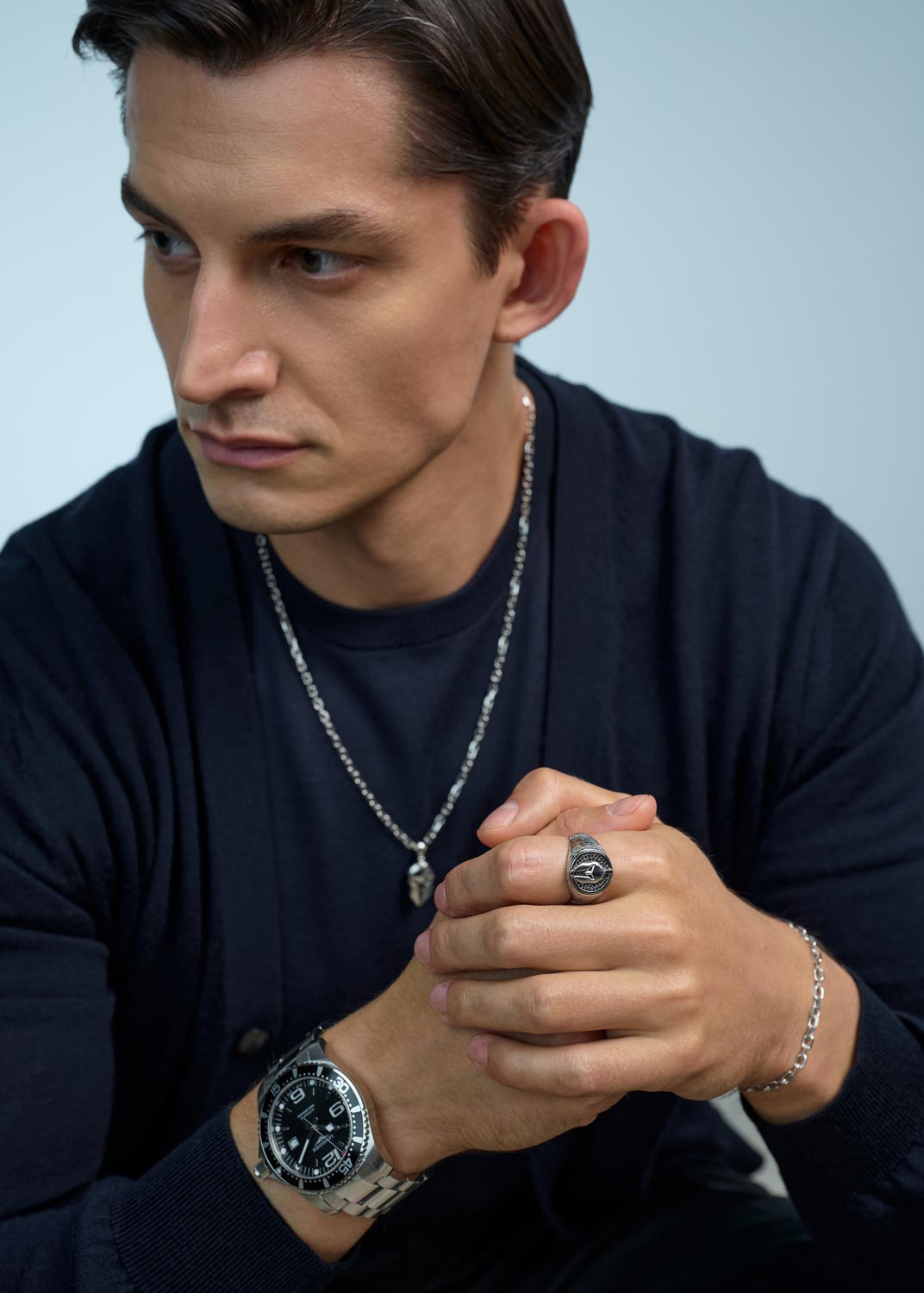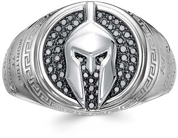 Фото «Мужская платиновая печатка перстень ''Гладиаторский шлем'' Platika 1-1193504-905 с черными бриллиантами»