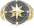 Мужская золотая печатка перстень ''Роза ветров'' Platika 1-1212504-305 с черными бриллиантами