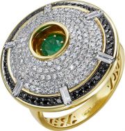 Фото «Женский золотой перстень Platika 1-1337504-353 с бриллиантами, изумрудами, черными бриллиантами»