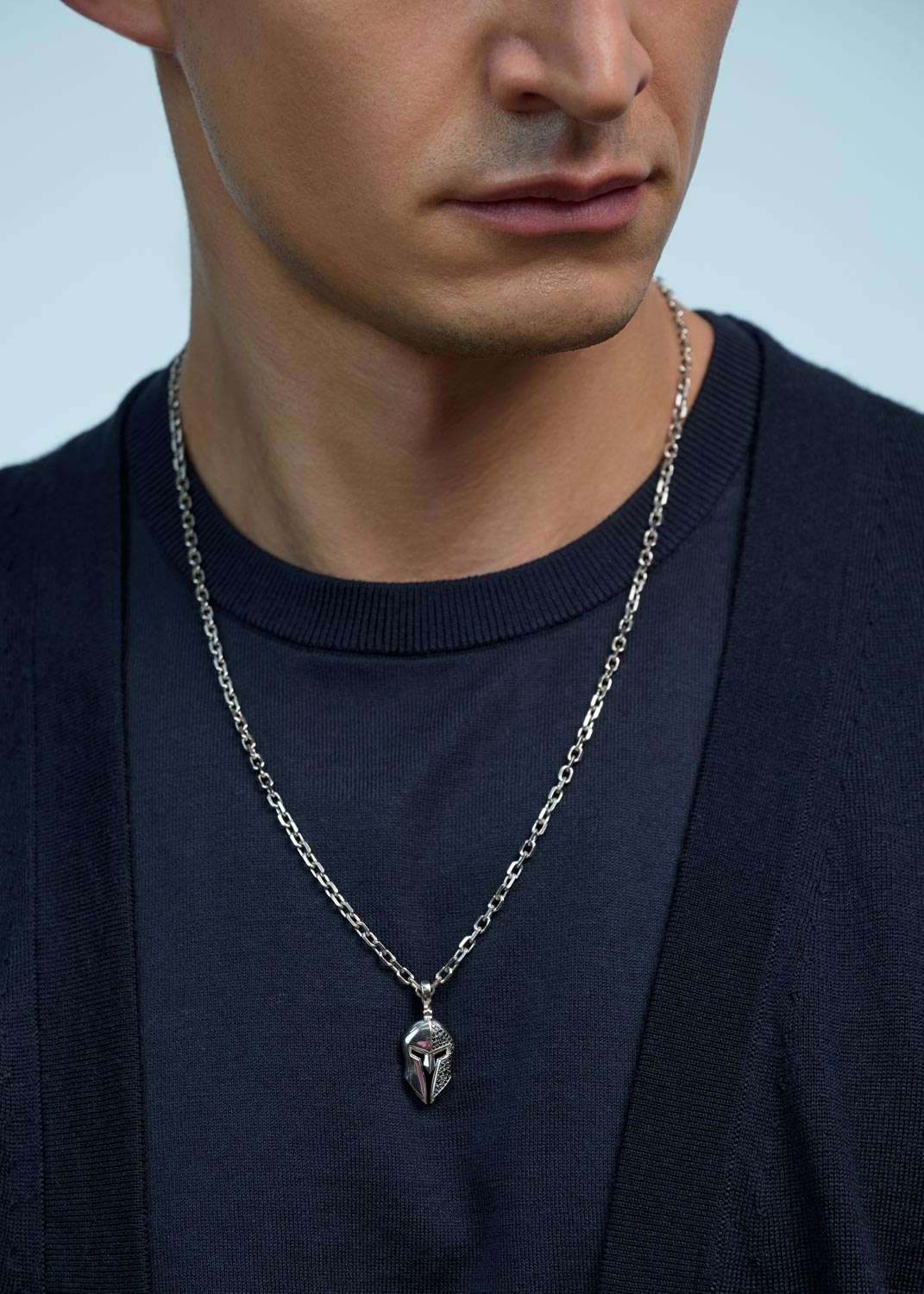 Фото «Мужская платиновая подвеска ''Гладиаторский шлем'' Platika 3-1193504-905 с черными бриллиантами»