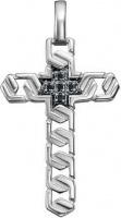 Женский платиновый декоративный крестик Platika 3-1209504-905 с черными бриллиантами