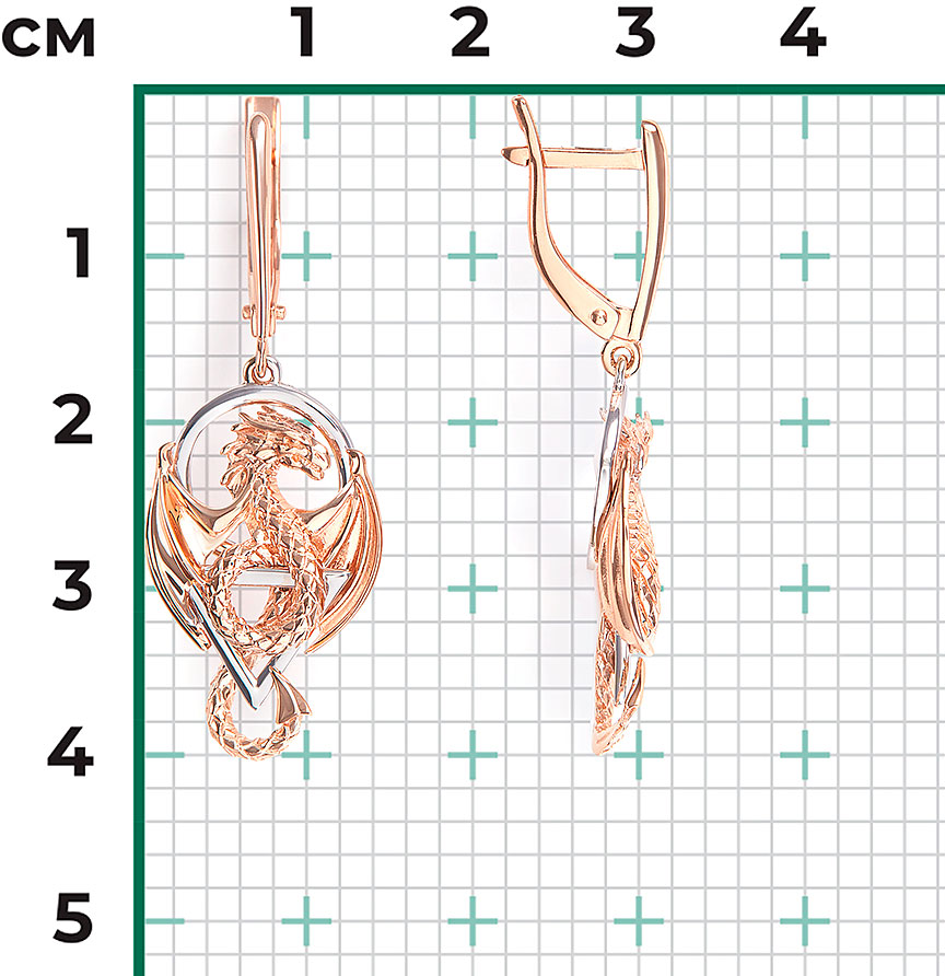 Фото «Золотые серьги с подвесками ''Драконы'' PLATINA Jewelry 02-5309-00-000-1111»