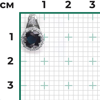 - сапфир облагороженный - 1,39К, чистота камня 3/2 (цвет, качество), бриллиант в 57 граней - 21шт. - 0,16К, чистота камня 4/5А (цвет, качество)