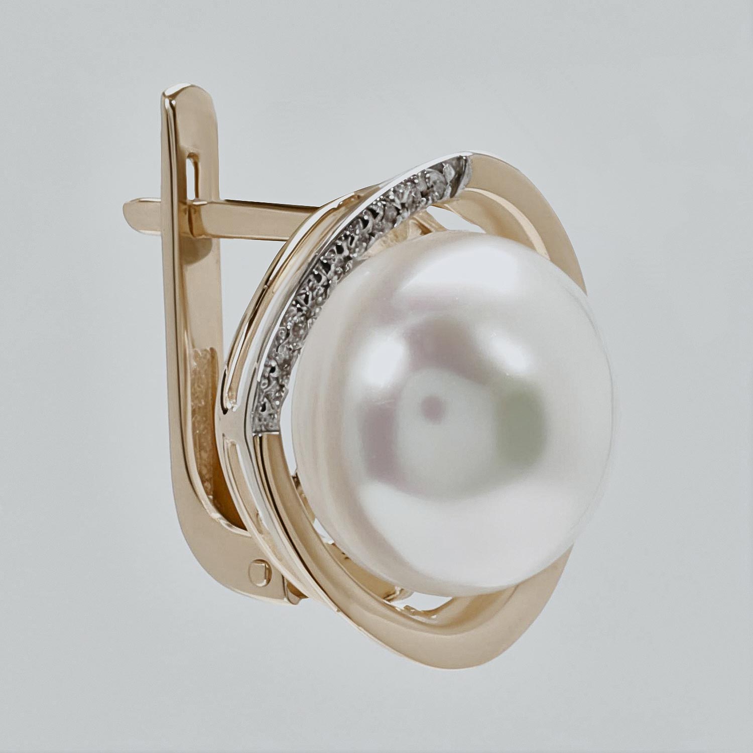 Фото «Золотые серьги Prima Exclusive 290-1-1123R с жемчугом, фианитами»