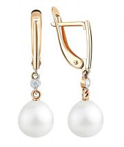 Золотые серьги с подвесками Prima Exclusive 290-1-1247R с жемчугом, фианитами