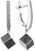 Фото «Серьги с подвесками из белого золота Primo Prezioso 02-P0261-03-040-07-04 с черными бриллиантами, бриллиантами»