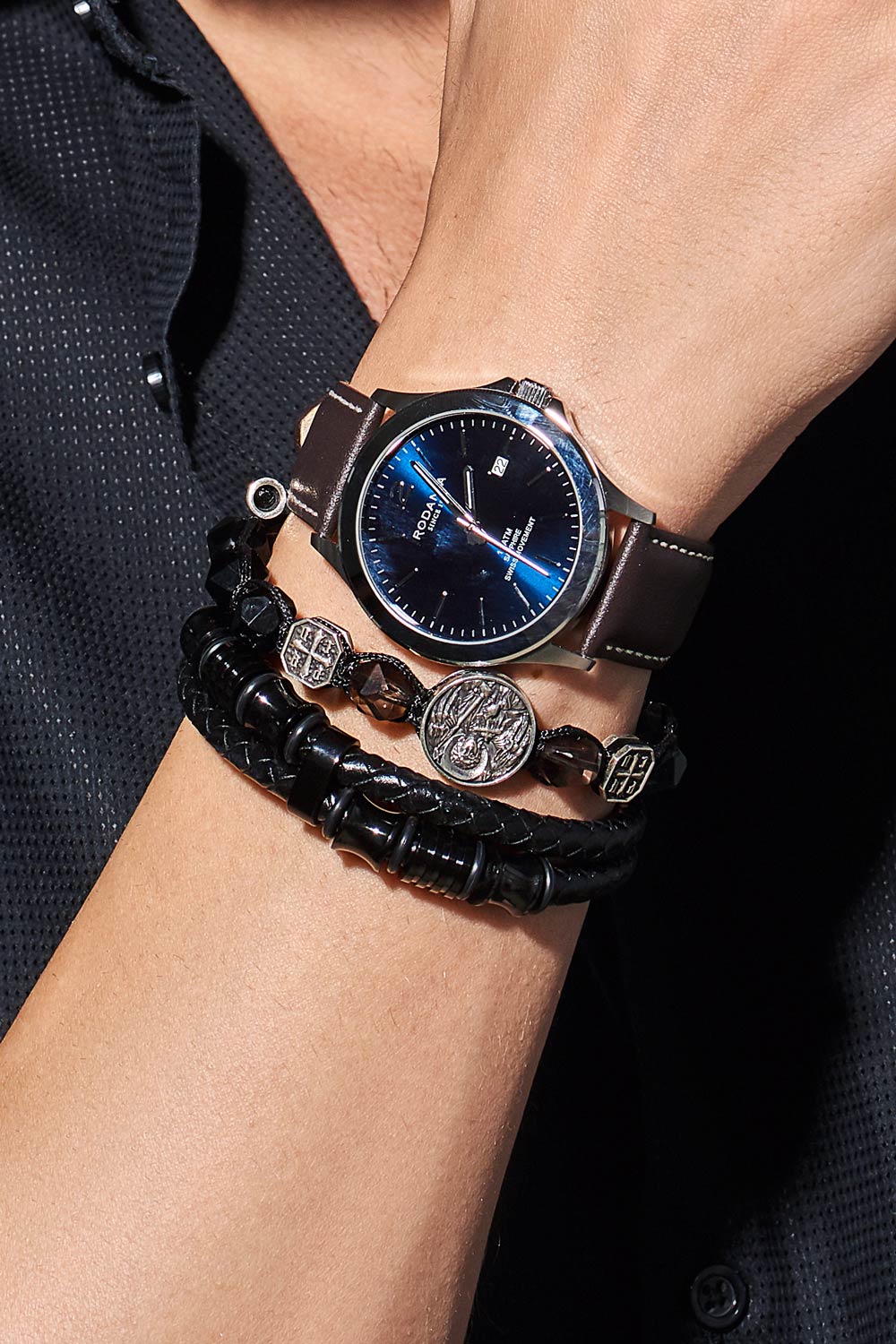 Фото «Православный браслет Ангел Хранитель PROCUDA BRPR-001 с черными агатами, раухтопазами»